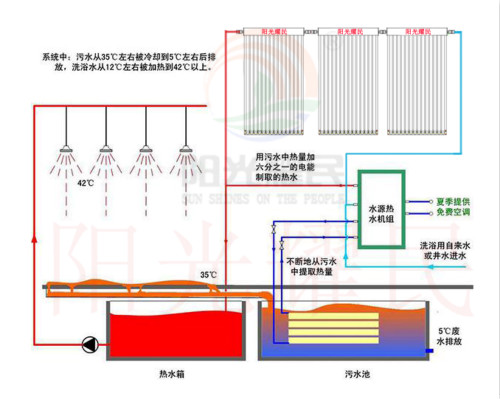 《洗浴排水熱能回收系統(tǒng)》是一項(xiàng)采用太陽能+熱泵,回收洗浴后的廢水中熱能的技術(shù)。_高溫洗浴熱泵回收低溫余熱,利用這一新的技術(shù)代替?zhèn)鹘y(tǒng)加熱方法,能夠減少燃煤對大氣的污染,節(jié)約大量不可_能源。